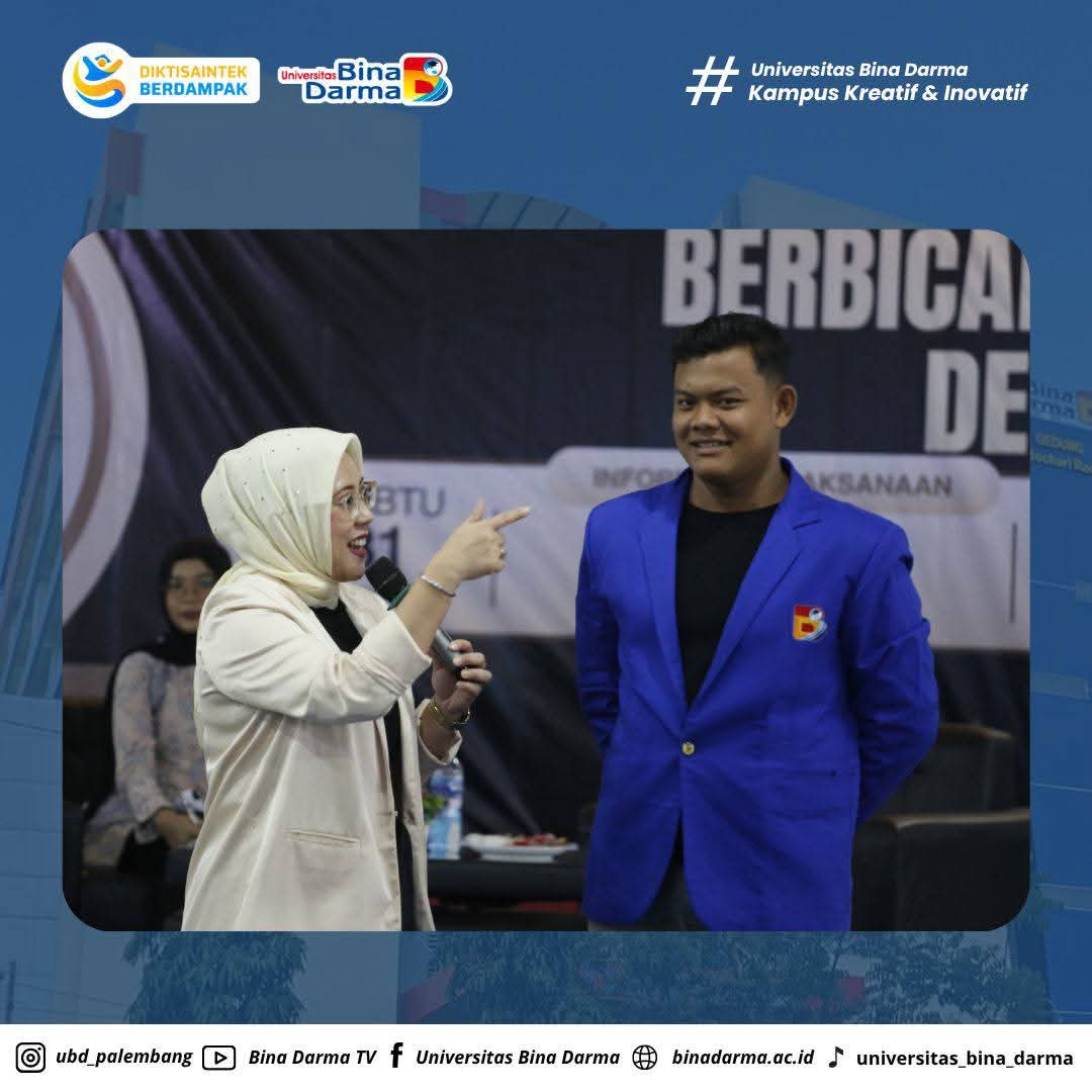 Foto peserta dari universitas bina darma dengan pemateri di acara SEMINAR NASIONAL" UNCLOK YOUR VOICE : SENI BERBICARA DI DEPAN PUBLIK DENGAN PERCAYA DIRI" yang diselenggarakan oleh HIMPUNAN MAHASISWA MANAJEMEN UNIVERSITA BINA DARMA PALEMBANG